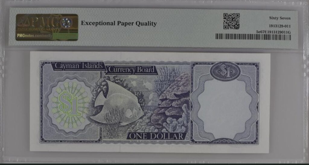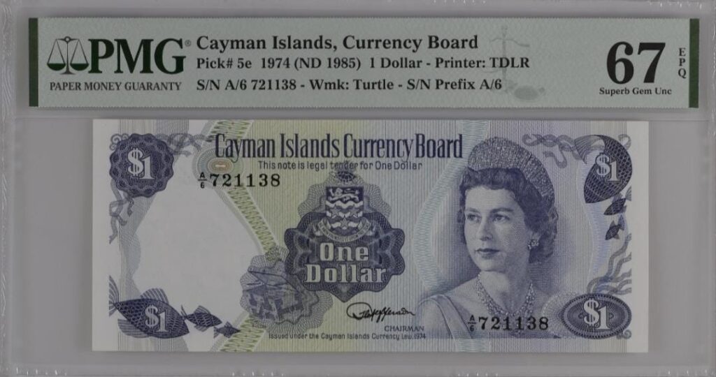 Cayman Islands 1 dollar 1974 – graded by PMG 67