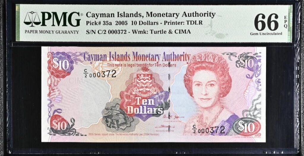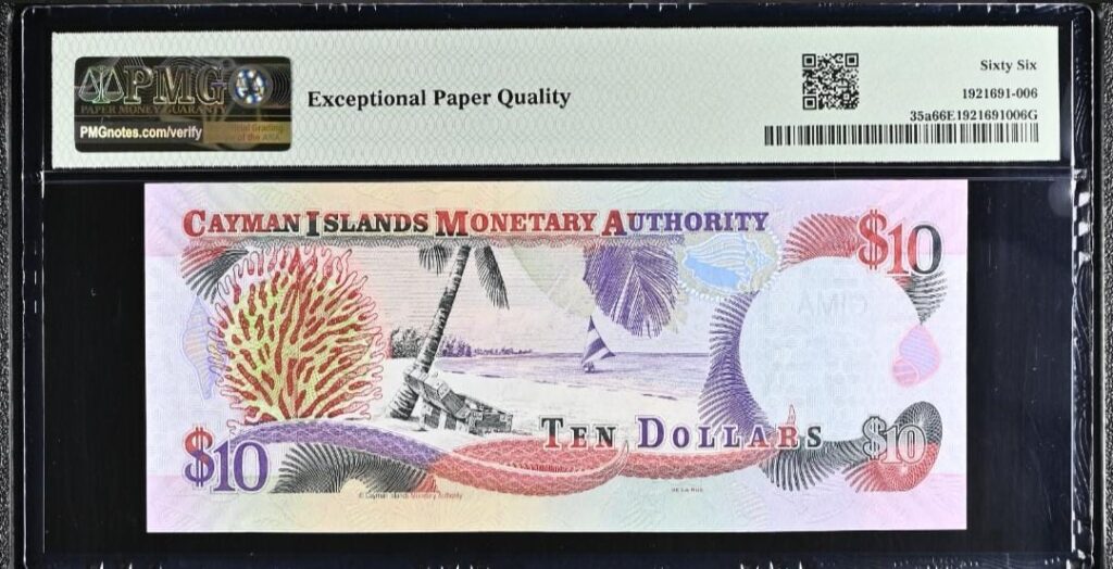 Cayman Islanids 10 dollars dated 2005 graded by PMG 66