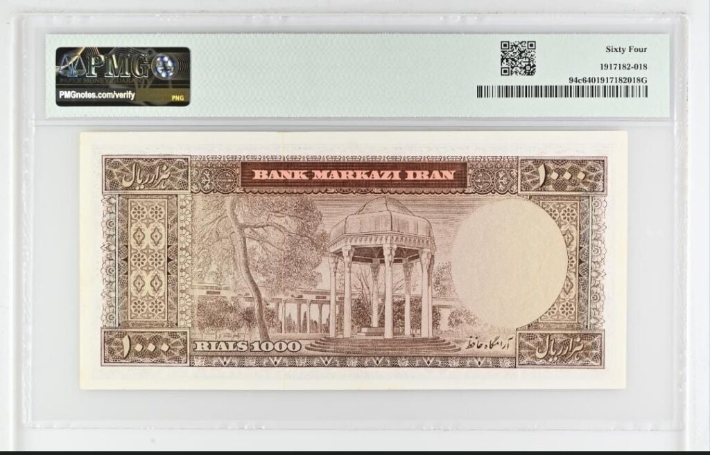 Iran Bank Markazi 1000 Riyals Shah Era graded by PMG 67